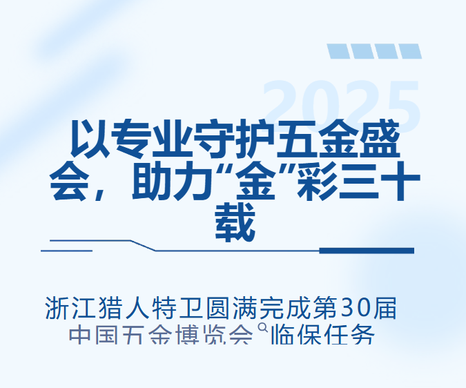30年五金博覽會(huì),見(jiàn)證了永康從傳統(tǒng)制造到智能科技的飛躍,也見(jiàn)證了獵人特衛(wèi)以專業(yè)守護(hù)行業(yè)盛會(huì)的初心。未來(lái),獵人特衛(wèi)將繼續(xù)以“鋼鐵意志”為各類大型活動(dòng)保駕護(hù)航,踐行“忠于責(zé)任,護(hù)衛(wèi)安寧”的企業(yè)使命!