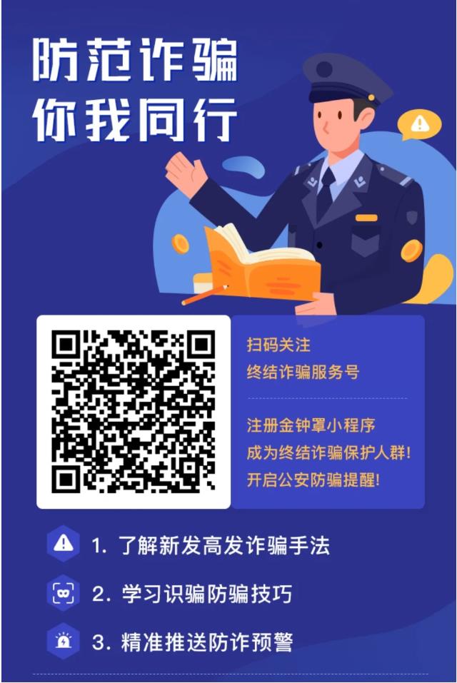 “金鐘罩”防詐公眾號,懇請您掃碼關(guān)注哦!