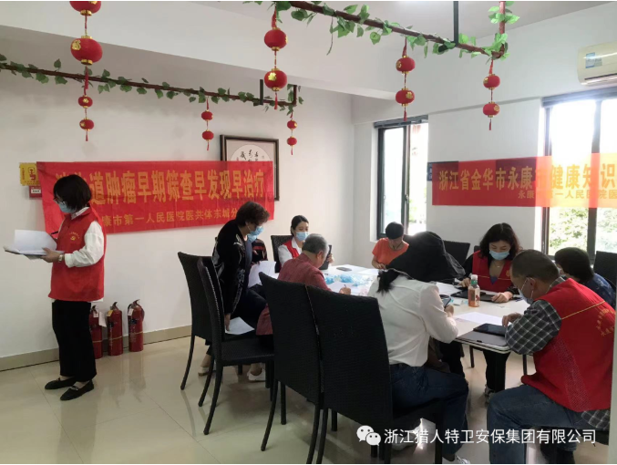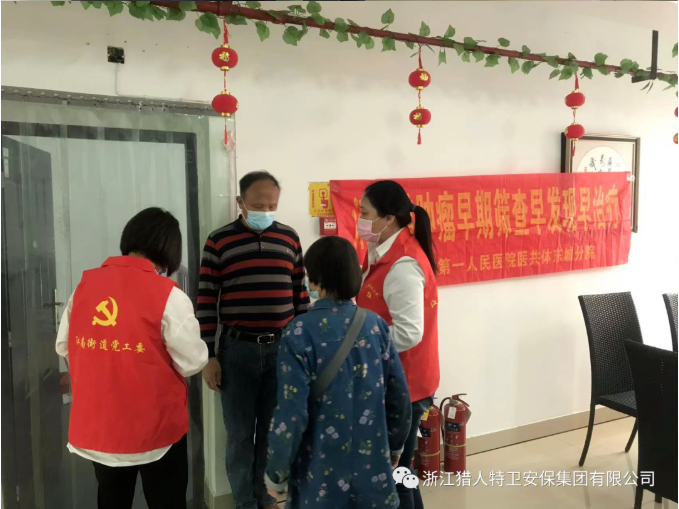 活動(dòng)前三天,獵人特衛(wèi)安保集團(tuán)黨支部黨員及入黨積極分子主動(dòng)請纓,要求配合送醫(yī)下社區(qū)團(tuán)隊(duì)為活動(dòng)全程提供志愿服務(wù),為早篩活動(dòng)盡自己的一份微薄之力?;顒?dòng)當(dāng)天,獵人特衛(wèi)志愿者們提前趕到檢查現(xiàn)場,早早地?cái)[好桌椅,并主動(dòng)向在場醫(yī)生及護(hù)士了解服務(wù)指南。志愿服務(wù)團(tuán)隊(duì)按照分工,指導(dǎo)或幫助早篩業(yè)主填寫早篩檢查同意書、有條不紊地為業(yè)主測體重、量身高、腰圍及數(shù)值記錄、早篩程序引導(dǎo)、答疑解惑等,隨處可見到她們忙碌的身影?,F(xiàn)場參加早篩的居民越來越多,她們這身上的那抹獨(dú)特的“志愿”更顯得搶眼。