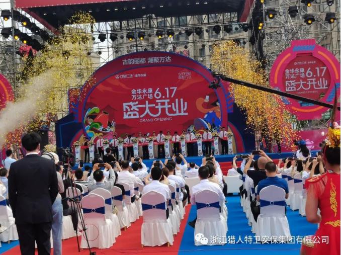 2022年6月17日上午8:00,歷經(jīng)數(shù)月籌建及精心打磨浙江省第二十二座萬達廣場——金華永康萬達廣場在萬眾矚目中如期綻放!浙江獵人特衛(wèi)安保集團有限公司以強烈的政治擔(dān)當、使命擔(dān)當、責(zé)任擔(dān)當,對標“細致、精致、極致”營商工作標準,主動作為、主動對接、積極服務(wù),提前謀劃、精細安排,抽調(diào)精干安保力量近千人次為本次開業(yè)慶典全程提供安保服務(wù),為這座永康新地標的首次亮相提供了堅強的后盾!