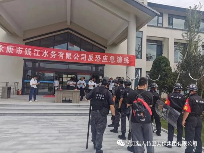 為進一步加強重點保護單位內(nèi)部及周邊安全防范,切實提升保安員及單位職員應(yīng)對暴恐事件的應(yīng)急能力和水平,增強安保人員及單位職員的安全防范意識。6月22日上午,永康市公安局特巡警大隊、屬地派出所聯(lián)動獵人特衛(wèi)安保集團有限公司應(yīng)急機動隊和駐企業(yè)安保班隊及永康市錢江水務(wù)有限公司干職員工開展反恐防暴應(yīng)急演練,取得了良好效果。演練開始前,特巡警大隊民警詳細(xì)講解了一鍵報警設(shè)備、鋼叉、盾牌等防護器械的使用要點,還進行了現(xiàn)場示范。