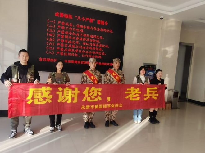 時(shí)序更迭,又一批老兵退役了。11月29日下午,永康市愛(ài)國(guó)擁軍促進(jìn)會(huì)副會(huì)長(zhǎng)單位----浙江獵人特衛(wèi)安保集團(tuán)有限公司聯(lián)合永康市退役軍人事務(wù)局及其他會(huì)員單位一起歡送退役老兵。這批老兵在軍營(yíng)服役12載,他們把最好的時(shí)光和青春獻(xiàn)給了國(guó)家、獻(xiàn)給了軍營(yíng)、獻(xiàn)給了永康。