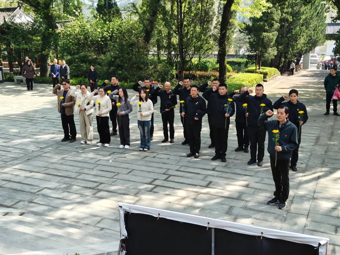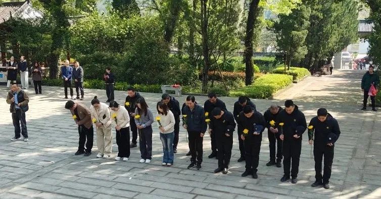 在莊嚴(yán)肅穆的陵園環(huán)境中,全體人員整齊列隊(duì),緩緩面向矗立在蒼松翠柏之間的烈士紀(jì)念碑。這座紀(jì)念碑不僅是對(duì)先烈們英勇事跡的銘記,更是對(duì)他們崇高精神與不屈信念的頌揚(yáng)。在它的見證下,全體人員緩緩彎腰,身體呈傾斜狀,表達(dá)對(duì)英烈的深深敬仰與無(wú)盡哀思。每一次鞠躬,都是一次心靈的洗禮,一次對(duì)歷史責(zé)任的重溫,一次對(duì)革命精神的傳承與發(fā)揚(yáng)。